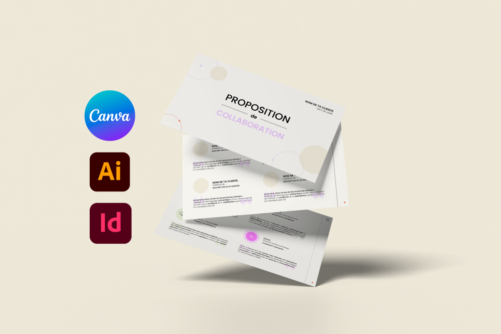 • Un dossier ZIP contenant un fichier Adobe InDesign, un fichier Adobe Illustrator et un fichier Canva : tous 100% personnalisables